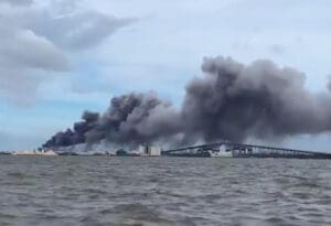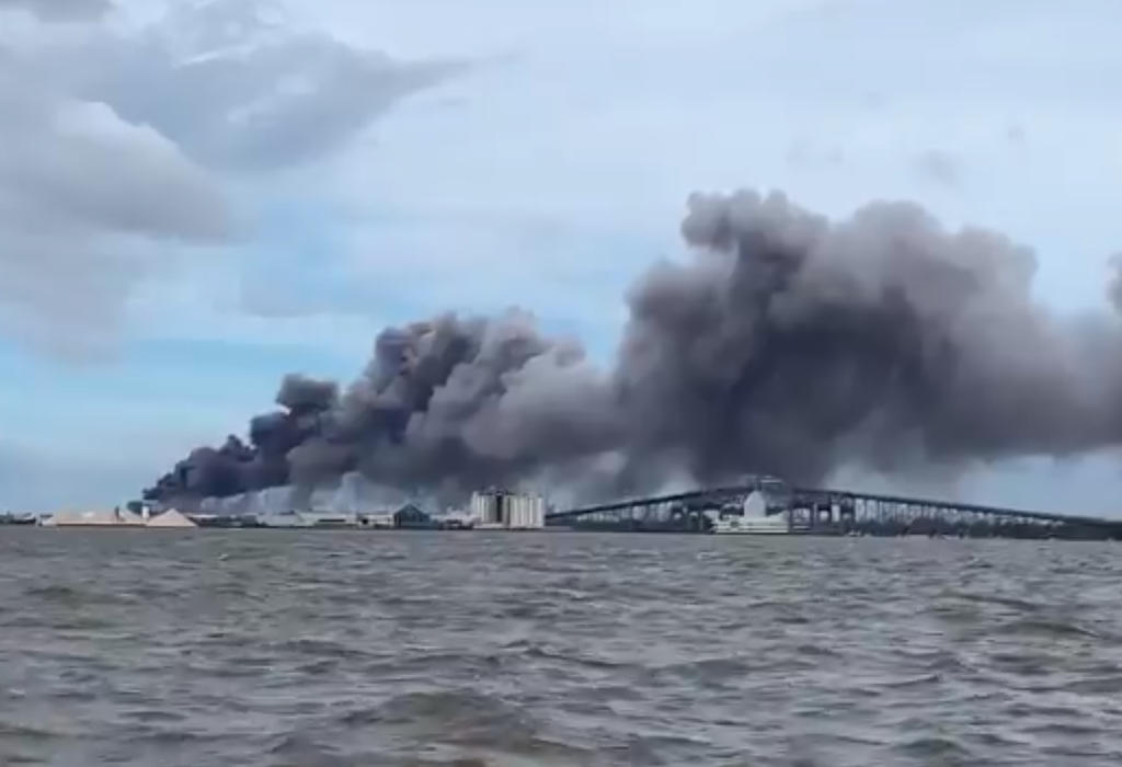 Video snimci požara koji se dijele na društvenim mrežama pokazuju masivan oblak crnog dima koji se podiže iznad vode.