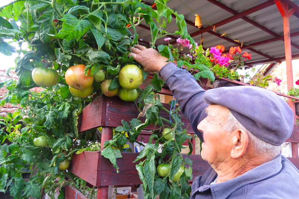 Danas kada sam posjetio osamdeset-četverogodišnjeg Milorada Brkića imao sam što vidjeti – ogromno „stablo“ rajčice s četrdesetak krupnih plodova. Ne smeta toj staroj sorti rajčice ni to što smo dobrano zakoračili u studeni, kada na u vrtovima više nema tog povrća, nisu joj smetale ni plamenjače i druge bolesti, ona se do sada othrvala svim nedaćama i daruje domaćine cijelo ljeto i jesen plodovima. I sada ih ima zrelih, ali i puno zelenih…