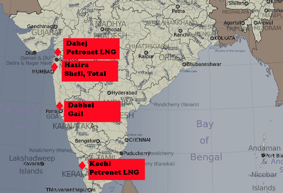 Indijski premijer Narendra Modi je odredio da se udio plina u energetskoj bilanci zemlje poveća sa 6,5% na 15%. Do nedavno su u Indiji radila četiri LNG terminala, a za sedam godina bi s e njihov broj trebao povećati za 11.
