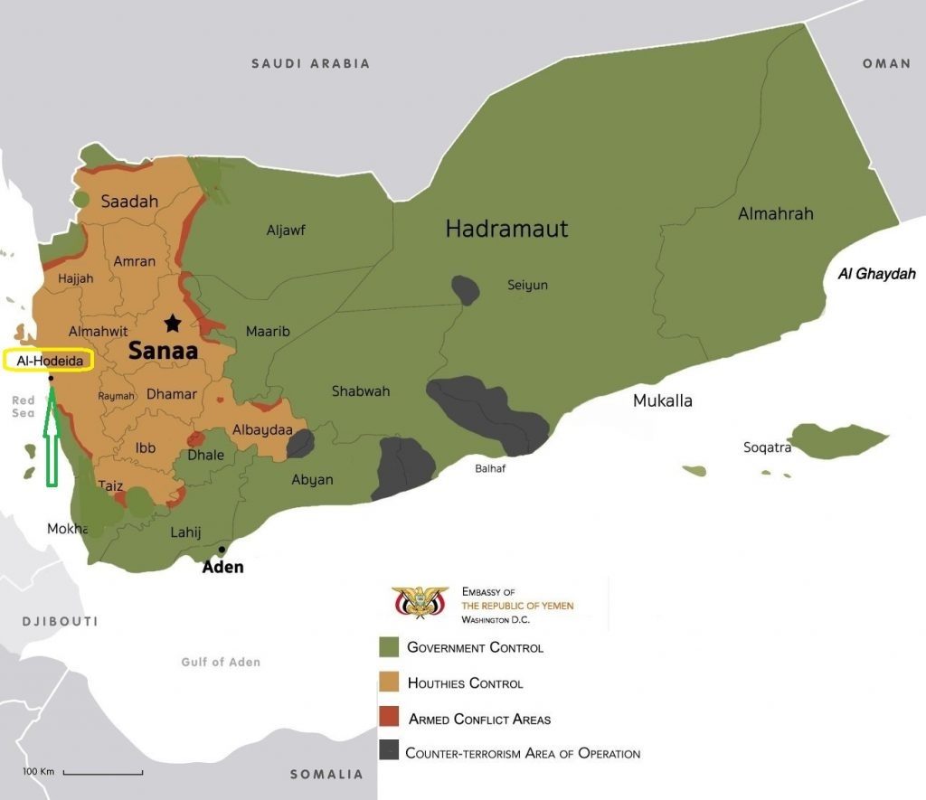 Krajem svibnja su se snage saudijske koalicije već približile Al-Hudaydi i pokušale zaobići obranu jemenskih boraca s istoka. Međutim, nakon niza kontranapada Huti boraca, jedinice UAE i Sudana, te jemenskih južnih snaga, pretrpjele su ozbiljne gubitke i bili su prisiljene na povlačenje. Sada, kada su probile blokadu obalne prometnice, poslale su pojačanja u ljudstvu u vojnoj opremi i bitka za Al-Hudaydu se može nazvati odlučujućom bitkom u ovom ratu. Ako jemenski borci odbiju napad, to će biti ponižavajući poraz za saudijski režim. U slučaju gubitka grada, jemenski borci neće moći pružati pravi otpor i bit će prisiljeni na manje gerilske akcije koje će iz jemenskih planina pokretati protiv okupacijskih snaga.