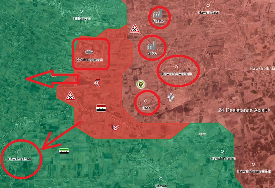 Noćas je sirijska vojska nastavila napredovati dublje u neprijateljsko područje i došla do grada Hawsh Ash’ari.