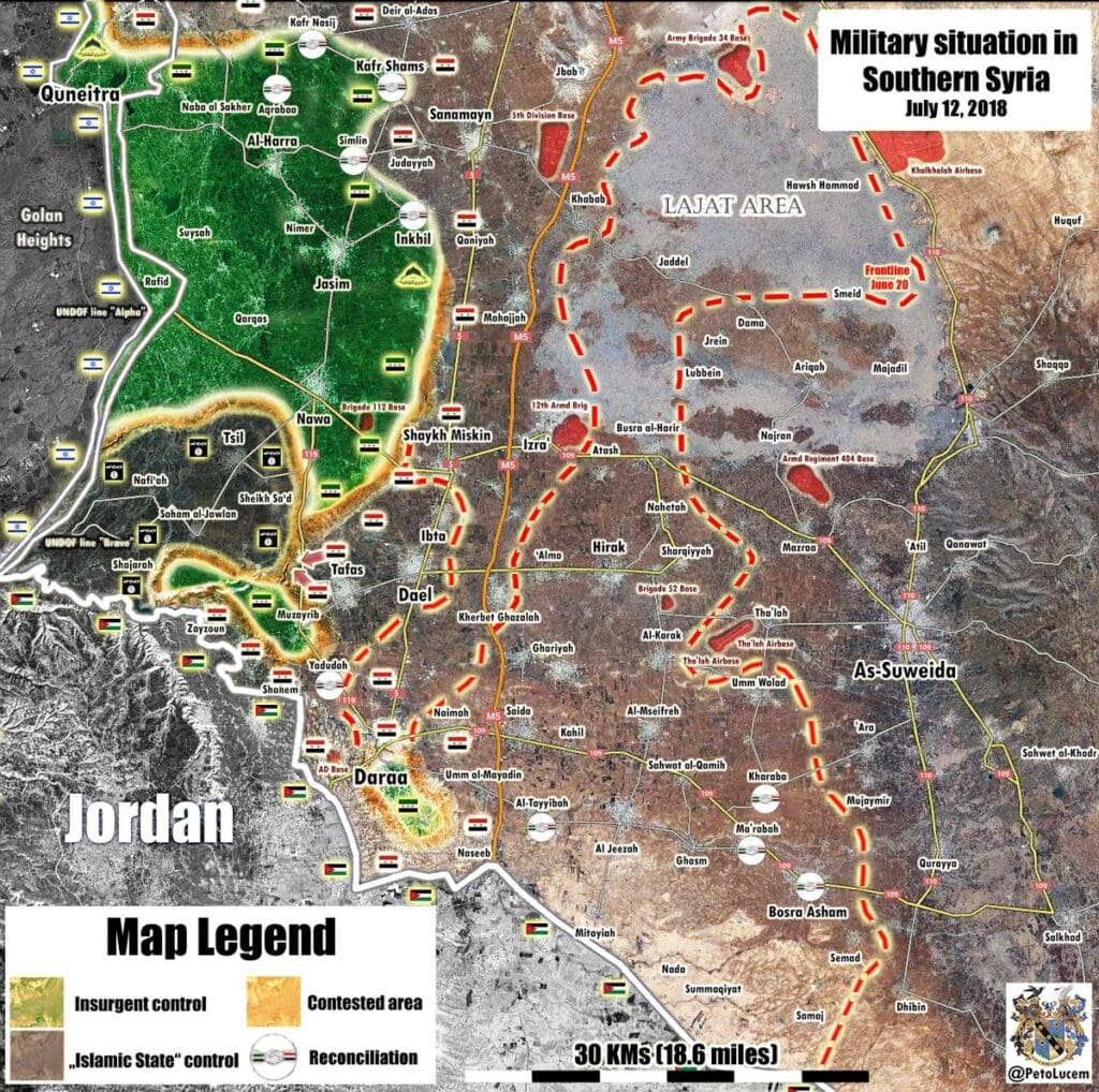 U takozvanom “trokutu smrti”, području kojeg na tromeđi Sirije, Jordana i Izraela drži ISIL, aktivno je najviše 1500 terorista tri različite skupine koje su se zaklele na vjernost Islamskoj državi i očekuje se da će se ovdje morati voditi veće bitke na uskom pograničnom području. No, borbena moć ovih skupina nije jaka, a konfiguracija terena jamči puno lakše napredovanje nego, na primjer, u urbanim područjima i ruševinama Yarmuka, gdje je sirijska vojska ipak uspjela slomiti otpor terorista “Islamske države”.