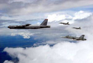 B-52H Stratofortres je strateški bombarder dugog dometa, koji se od 1955. nalazi u službi vazduhoplovstva SAD, radijus dejstva iznosi oko 7 200 km a može ponjeti do 31 500 kg bombi u raznim konfiguracijama uključujući i nuklearne.