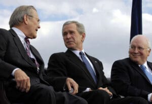 Nakon što je George W. Bush proglašen pobjednikom 2000. godine, mnogi iz skupine PNAC su zauzeli istaknute položaje u njegovoj administraciji, uključujući Cheneyja i Rumsfelda. Ostali potpisnici PNAC-a, uključujući Dova Zakhema, Johna Boltona i Elliotta Abramsa, uskoro će se naći u Bushovoj administraciji, gdje će biti usko uključeni u planiranje i izvršenje rata u Iraku. Konačno, Bushov brat, Jeb Bush, također je potpisnik Projekta za novo američko stoljeće.