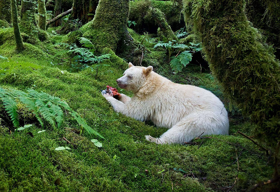 Ne, ne radi se o polarnom ili albino medvjedu. Kermode medvjed fascinira jer je crni medvjed s “bijelim kaputom”. Ova karakterističnost ga je uvela i u legendu. Tisućljetno pleme Kitasoo, koje živi na kanadskoj pacifičkoj obali, uvjereno je da svaki deseti rođeni crni medvjed mora biti bijel, a što je podsjetnik na ledeno doba.