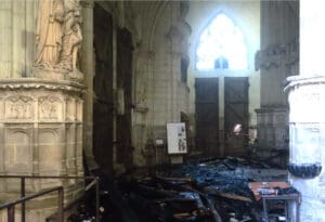 Eparhija Nantes objavila je na Facebooku fotografije poslije požara. Potpuno je uništio grandiozne orgulje u katedrali St. Pierre i St. Paul, raznio mural, prozore na prednjem dijelu zgrade i uništio dragocijenu sliku iz 19. vijeka koja je poslata iz Rima.