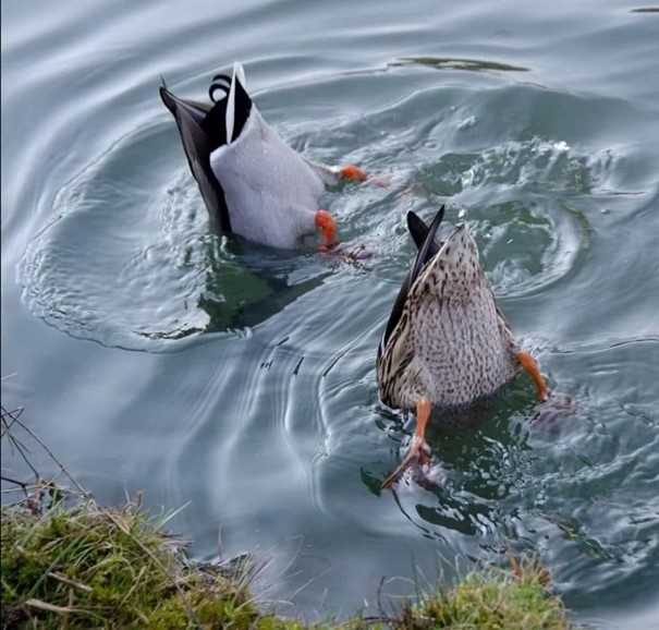 Eto, gledajući njenu fotografiju na kojoj su dvije patke koje rone u bari, napisao sam ovakvu pjesmu: