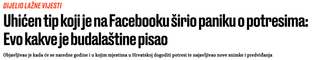 Čak će nam i hrt.hr kroz usta nekog titularskog seizmologa reći: “Ne nasjedajte na dezinformacije, potresi se ne mogu predvidjeti!”
