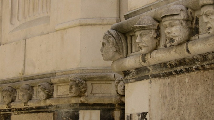 Nekada davno isao sam u Sibeniku u skolu ispod Poljane (tada se zvala skola Sime Matavulja, a dragi ucitelj Tomo Lambasa) i tada sam ucen da je isklesan vijenac od 71 glave najvrijednijih radnka ili stradalih na gradnji koji su radili na gradnji katedrale, i ako se dobro sjecam 70 muskih i jedna zenska glava.