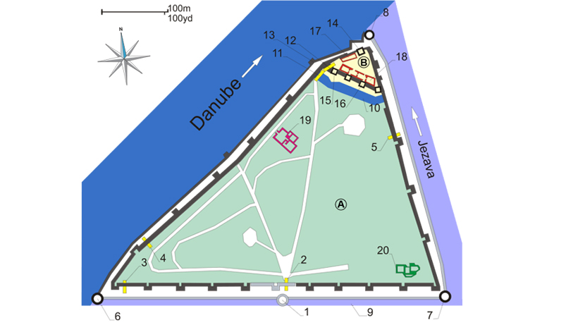 Grad je bio s jedne strane opasan Dunavom, s druge rekom Jezavom koja je sada mala ali u srednjem veku je bila plovna, a sa strane glavnog ulaza u grad bio je napravljen kanal. Jedinstvena zamisao trougaone tvrđave i grada bila je veoma napredna i dobra zamisao za odbranu od hladnog oružja. Ni Đurađ ni Jerina nisu razmišljali da će se Turci već po završetku grada vratiti sa topovima i sa reka gađati kamenom đuladi koja je unutra bila ispunjena barutom, ne bi li tvrđavu osvojili.