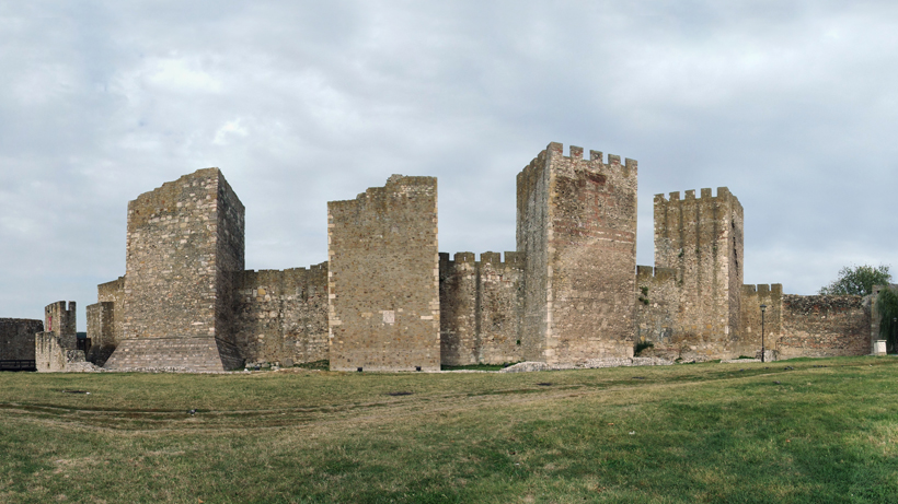 Tvrđava se počela graditi 1428. godine. Sadržala je, kao što je i danas moguće videti, 25 kula visokih 25 metara i zidine koje su duge od 1500 metara pa do 600 i četirsto metara. Sve ovo je izgrađeno za samo 11 godina. Izgradnja grada je bila naporna, narod je teran na kuluk odnosno prisilan i neplaće rad, iz ruke u ruku izgradili su velelepno zdanje. Za samo dve godine, od 1428. do 1430. sagrađen je mali grad – Jerinin grad i dvor sa tri sprata. Na prvom spatu dvora bila je “magna sala” odnosno sala za audijencije koje su se održavale za mnoge važne ljude i vlastodržce u Evropi. I Đurađ i Jerina su govorili više jezika. Na drugom, tj. srednjem spratu dvora, nalaze se before, tj. prozori s klupicama, sa kojih su Đurađ i Jerina gledali na Dunav, mesto s koga je mogla doći opasnost. Taj srednji sprat je bio i njihov privatan sprat. Ono što je interesantno jeste da je na tom spratu bio i toalet, koji je do danas sačuvan kao primerak i svedok veoma visokog nivoa razvijenosti srpske države u to vreme, bez obzira na sve pretenje i nedaće. Jerinin i Đurađev dvor je jedan od retkih dvorova 15. veka koji je imao ugrađen toalet. Na vrhu Jerinine kule, nalazio se njen lični bazen, preteča savremenih đakuzija. Sagrađen je po njenoj želji i po ugledu na stare rimske terme. Ispod se u ložištima ložila vatra, a topao vazduh ili voda kroz cevi su dolazili iz tih otvora na udaljenim ložištima u Jerinino mesto uživanja na samom vrhu njen kule.