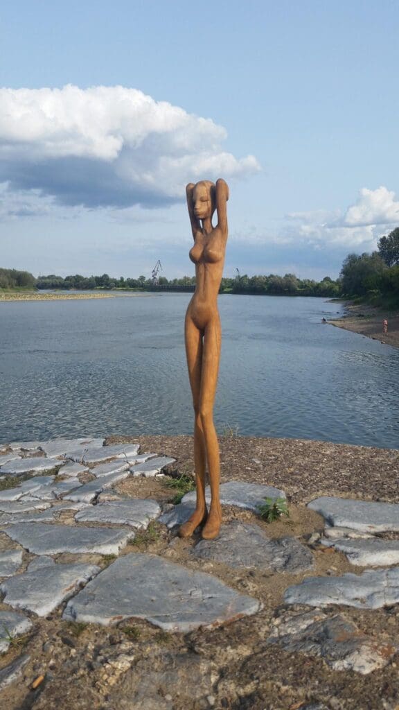 Neobičan je to prizor – neposredno uz rijeku Savu, možda pet metara od vode, na tlu, nizgled razbacano bez ikakvog reda, izloženo je na desetine radova akademskog kipara Ive Nedića. Ovaj renomirani umjetnik, koji je imao izložbe u mnogim zemljama svijeta, došao je na ideju da oko Keja sakuplja komade drveta neobičnih oblika i od njih izrađuje svoje figure. Tu je i kamnje raznih veličina i oblika.