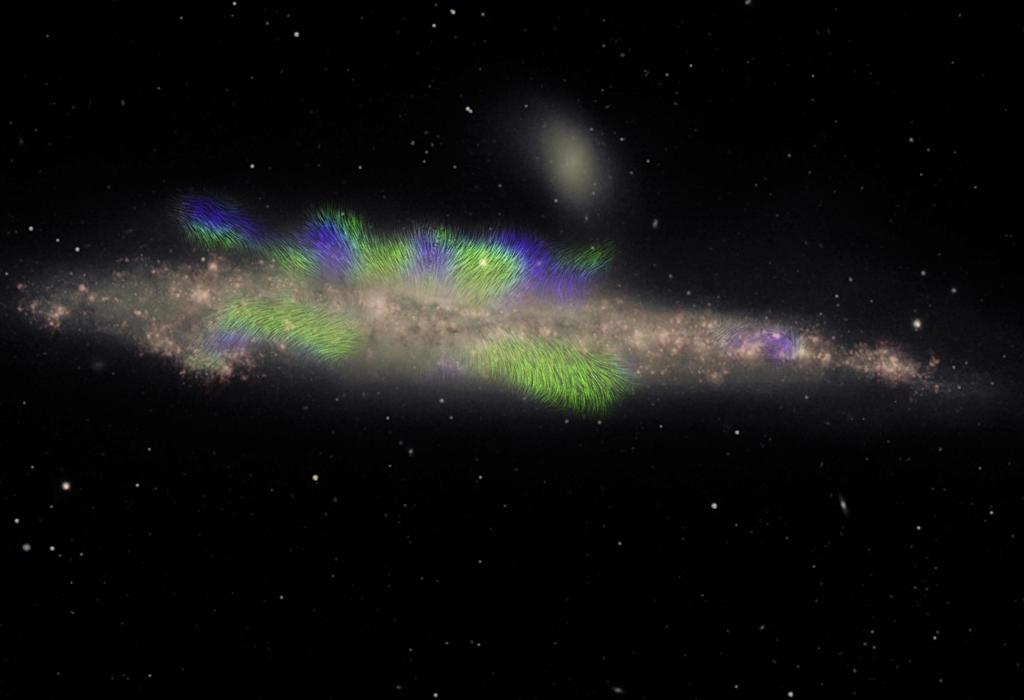 Vlakna – ogromne strukture slične nitima – koje se na slici prikazuju zeleno i plavo, pružaju se daleko u oreole plina i prašine galaksije, pri čemu zelene niti imaju magnetsko polje usmjereno od Zemlje dok plave imaju polje usmjereno prema našem planetu.