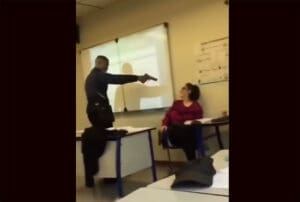 Kao u svim zapadnim zemljama, tako i u Francuskoj polako ali sigurno raspada se obrazovni sustav. Razina raspada više nama granica. Video kojeg objavljujemo pokazuje učenika koji s pištoljem prijeti profesorici tražeci da okrene glavu i ne gleda ga.