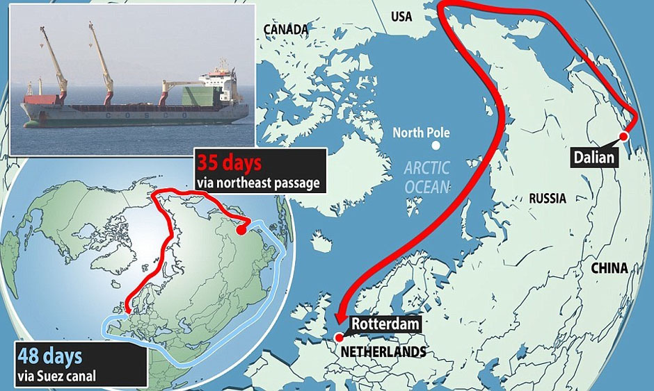 Ruska Državna Duma je 24. prosinca 2017. usvojila nove izmjene Zakona o pomorskim trgovinskim rutama. Među novostima je klauzula o ekskluzivnom pravu na transport nafte i plina kroz Sjeverni pomorski put, teritorijalne vode Rusije koje su zbog otapanja leda postale prohodne za prolaz brodova s velikim teretima. Prema novom zakonu će sada samo ruski brodovi moći transportirati naftu i plin ovim pomorskim pravcem. Prema riječima zastupnika Države Dume, time će se kroz Sjeverno more znatno povećati obujam prometa brodovima pod zastavom Ruske Federacije. Nakon toga je Rusija Kini predložila zajedničko korištenje ove rute i 26. siječnja je iz Pekinga stigao pozitivan odgovor.