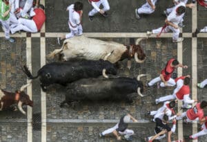Svakog jutra u 08:00 između 7. i 14. jula u okviru sedmodnevnog festivala, hiljade ljudi prolaze ulicama srednjovekovnog grada kako bi učestvovale u stogodišnjoj tradiciji trčanja s bikovima.