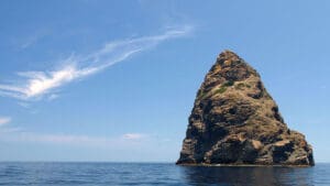 Daleko od morskih puteva, tridesetak milja zapadno od otoka Visa, diže se iz dubine i strši stotinjak metara nad morem crna piramida od vulkanskog eruptiva – otok Jabuka.