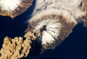 Lanac otoka aleutskog luka na Aljasci sadrži otprilike 80 vulkana različite veličine, od kojih su deseci u posljednje vrijeme više puta eruptirali, a među njima i planina Cleveland, koja je u posljednjih 200 godina čak 20 puta eruptirala.